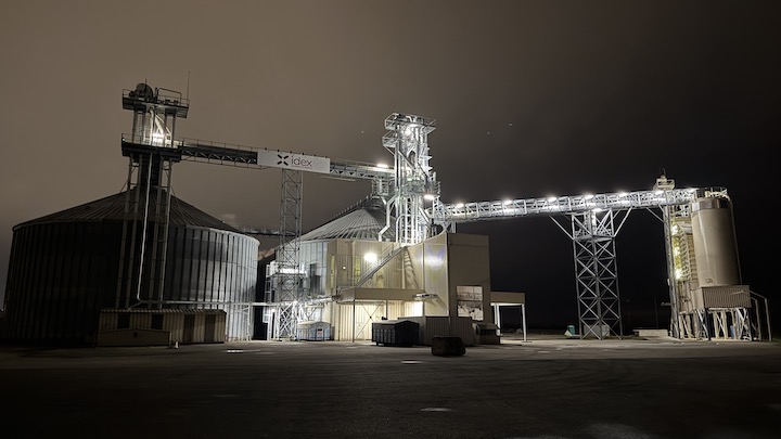 La plateforme multimodale s’étend sur 9,2 hectares, dispose de 10 silos de 9 600 m3 chacun, chaque silo pouvant contenir 6000 tonnes de granulés. Idex et l’équipementier SET France y ont mené des travaux imposants de mise en sécurité, d’amélioration des performances de manutention et de maintien de la qualité des produits en termes d’humidité et de poussière, la plupart du temps sous conditions AtEx. Au-delà même des besoins de la chaufferie de La Défense, cet investissement est très largement dimensionné et dispose d’un foncier important et donc de grandes possibilités d’agrandissement. Il a été pensé comme un outil stratégique à même de concentrer des biomasses agricoles, à faible coût d’acheminement, à bilan carbone faible, car situé au cœur d’une grande région céréalière. Et de par sa liaison ferroviaire, il est aussi en capacité d’accueillir à bon compte d’autres granulés, y compris de bois, ou d’en produire lui-même sur place. Car l’objectif d’Idex est de faire du site de Gellainville une plaque tournante pour les granulés biocombustibles, avec la capacité de les acheminer facilement par rail vers des chaufferies sur tout le bassin parisien, la Normandie, les Hauts-de-France et le Centre-Val-de-Loire.