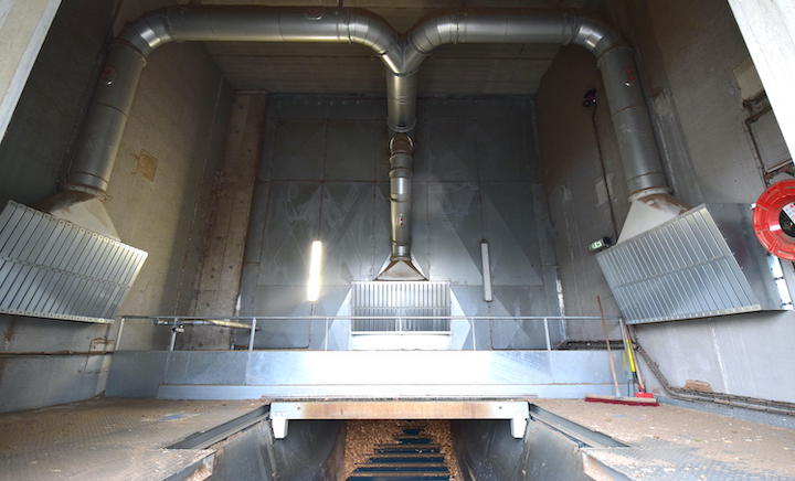 Le dispositif d’aspiration des poussières dans la local de livraison du bois, photo Frédéric Douard