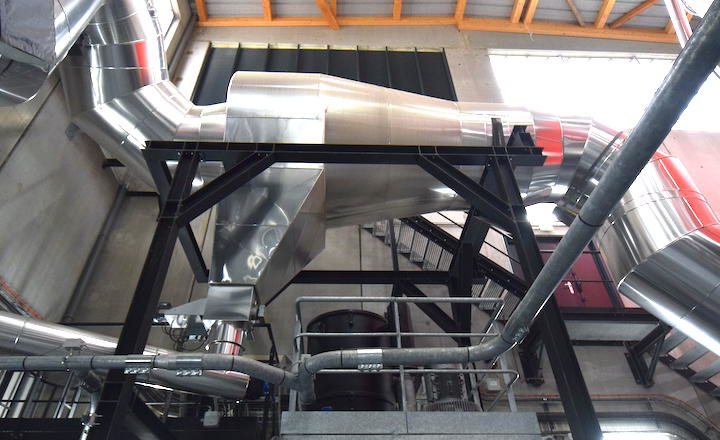 Pour assurer une efficacité énergétique la plus grande possible, les gaz de combustion sont refroidis en sortie de filtre à manches pour en récupérer une partie de la chaleur et augmenter le rendement global de l’installation. Ici, le gain de rendement est d’environ 800 kW à pleine charge, ce qui représente un gain de rendement de 5 %.