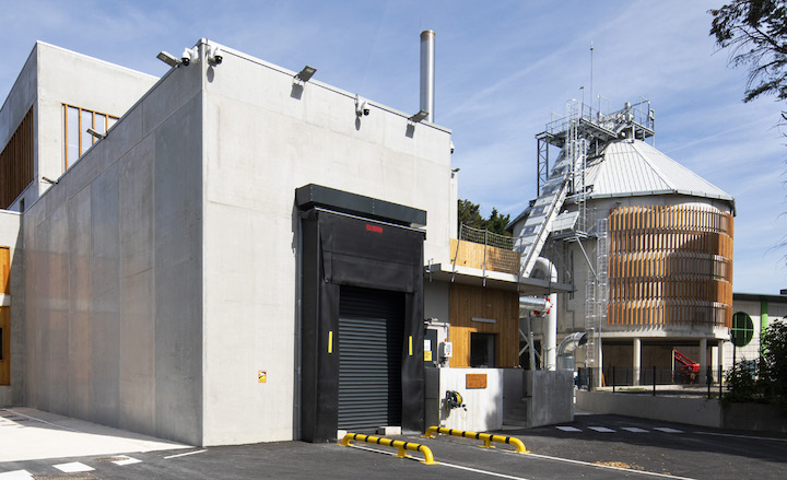 Le silo à bois de la nouvelle chaufferie et son poste de livraison, photo Engie Solutions