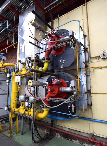 L’une des chaudières gaz en place dans la chaufferie historique, photo Frédéric Douard
