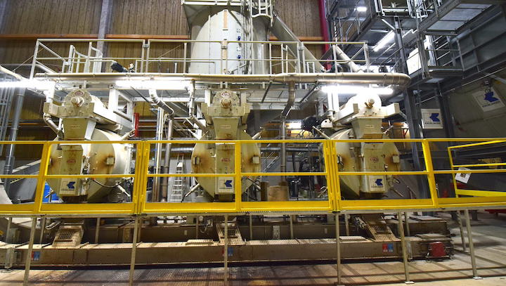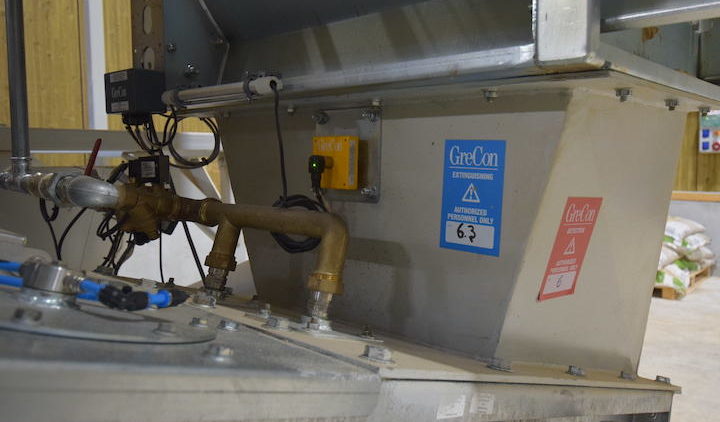 Cet ensemble fourni clé en main est également conçu avec un grand respect des prescriptions concernant la détection des étincelles et les dispositifs d’extinction. Sur ce dernier point, c’est la société GreCon qui a fourni tous les capteurs et dispositifs d’extinction sur l’ensemble des postes en bois sec, depuis la sortie du séchoir jusqu’au silo de granulés, en passant par les broyeurs, les convoyeurs et les presses.