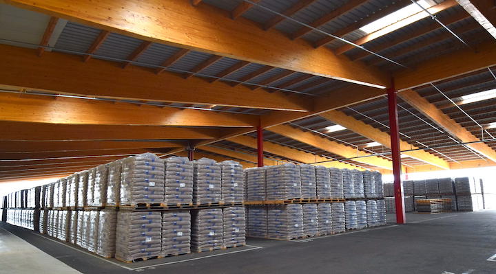 Pour sa fourniture en sacs, qui absorbe 70 % de la production, le site dispose d’une ligne d’ensachage de 22t/h de capacité et d’un superbe bâtiment à charpente bois de 5500 m² pour le stockage des palettes. Une partie de la production est ensachée sous la marque de l’entreprise, Morvan Pellets, principalement pour le marché régional, mais également sous des marques de distributeurs.