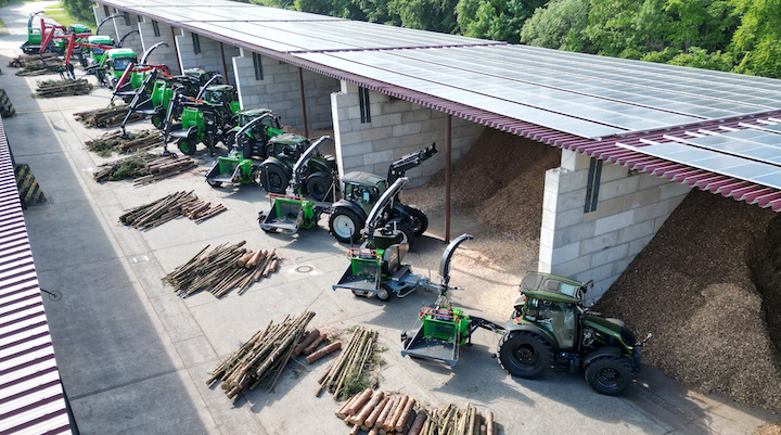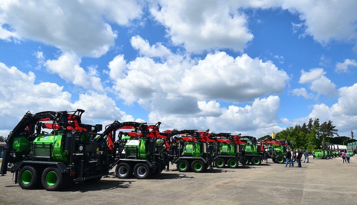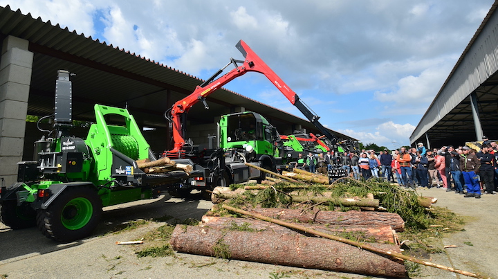 Alignement de la gamme des déchiqueteuses avec grue lors des Heizohack Days 2025, photo Frédéric Douard