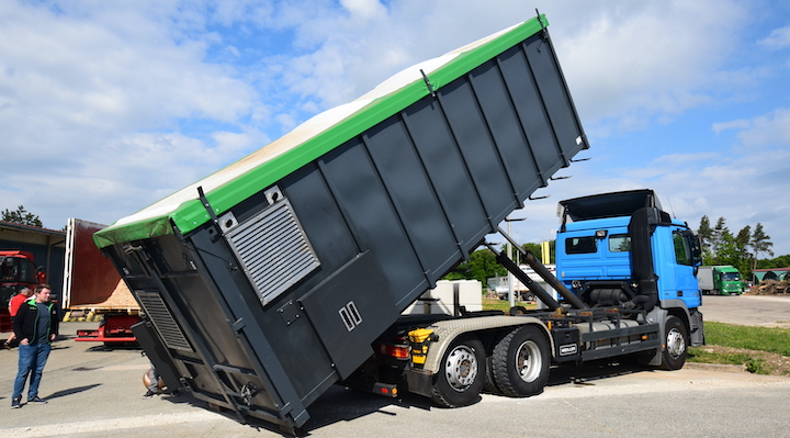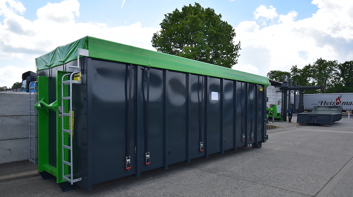 Le tout nouveau conteneur souffleur de plaquettes Heizomat présenté lors des Heizohack Days 2025, photo Frédéric Douard