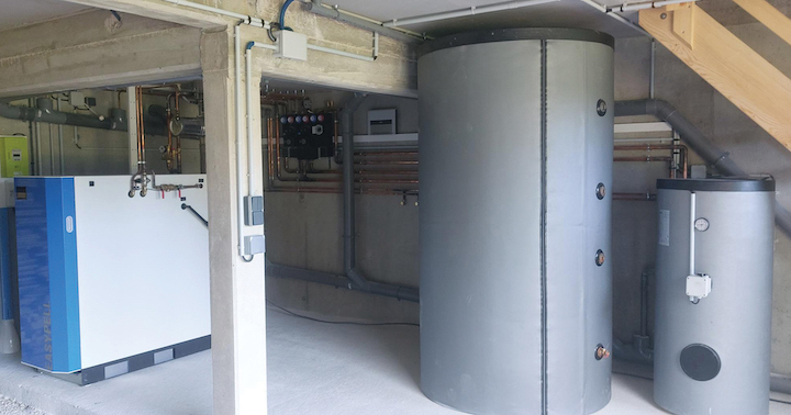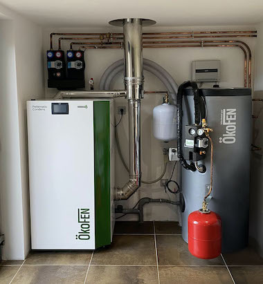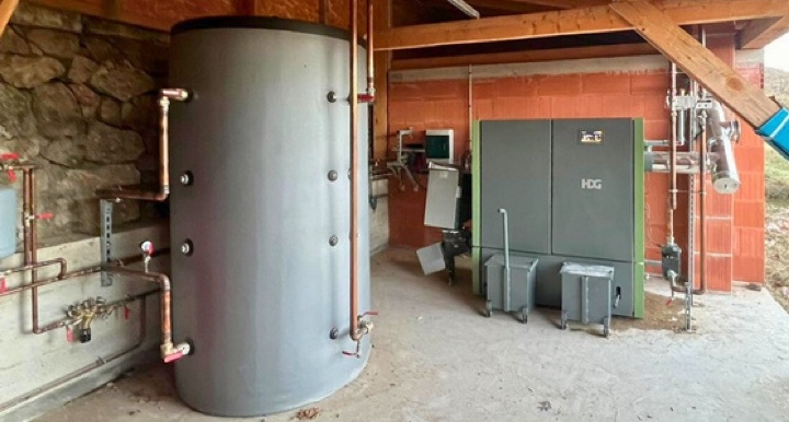 Chaudière à bûches Easypell de 22 kW avec ses ballons tampon et ECS pour une maison de 160 m², photo ÖkoFEN