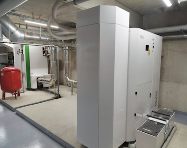 Cascade de deux chaudières HDG M de 240 kW à Pont de Claix en Isère, photo ÖkoFEN