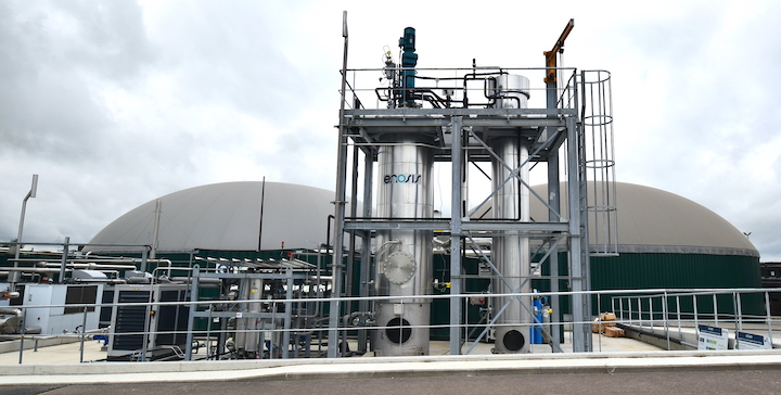 La start-up toulousaine Enosis a inauguré le 20 mars 2025 son premier démonstrateur industriel Denobio, une installation pionnière positionnée chez un producteur de biométhane des Hauts-de-France, la société Energia Thiérache située à Lesquielles-Saint-Germain dans le département de l’Aisne, dans une région riche en parcs éoliens. Alimentée à partir de matières organiques presque exclusivement d’origines végétales, l’unité de méthanisation produit 475 Nm³/h de biogaz composé à 55 % en moyenne de biométhane. Ce projet de méthanation, c’est-à-dire ici de production de biométhane de synthèse à partir de CO₂ et d’hydrogène renouvelable, vise à tester la production supplémentaire de méthane à partir de la valorisation du CO₂ issu de la purification du biogaz produit par le site au lieu de le rejeter à l’atmosphère, une solution qui pourrait améliorer encore plus fortement le bilan carbone du biométhane produit.