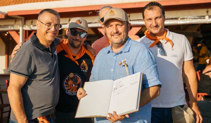 Les entrepreneurs dédicacent le recueil d’articles du magazine Bioénergie International. Depuis la gauche Frank Fayolle, Matthieu Petit, Frédéric Douard et François Girard, photo CBQ+