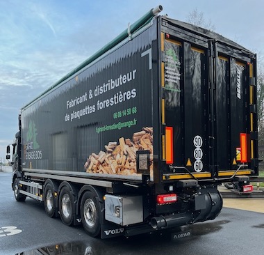 Le tout nouveau camion souffleur de plaquettes des Ets Girard Bois Energie, photo Transmanut