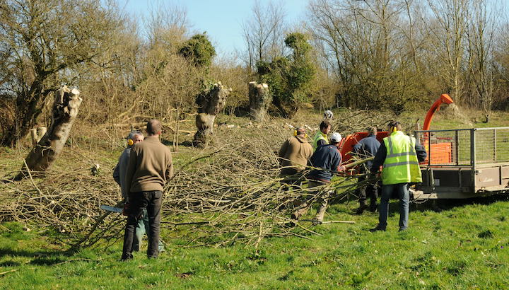 Taille de frênes têtards dans le bocage Boulonnais et production de plaquettes bocagères, photo Xavier Douard