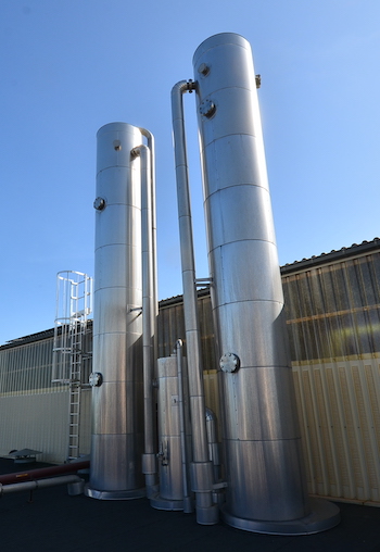 Les colonnes de lavage à l’eau du biogaz, photo Frédéric Douard