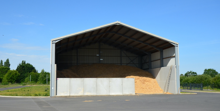 L’une des halles de stockage de miscanthus chez Agri Union Bioénergies, photo Frédéric Douard