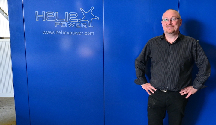 Koen Clepkens devant une turbine de cogénération Heliex à Uden aux Pays-bas, photo Frédéric Douard