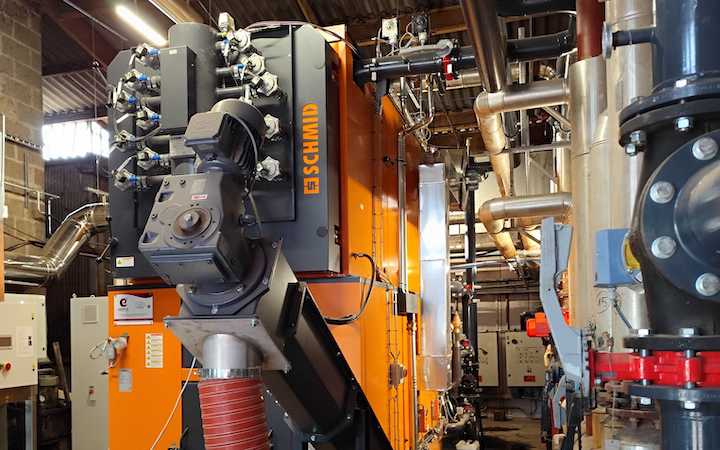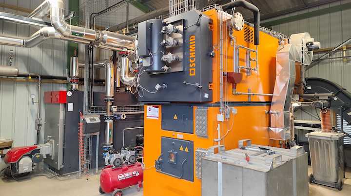 - d’une chaufferie disposant de deux chaudières Schmid de 550 kW et 2 MW, avec filtre à manches ;
