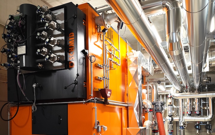 - la mise en place d’une chaufferie avec deux chaudières Schmid de 450 kW et 900 kW ;