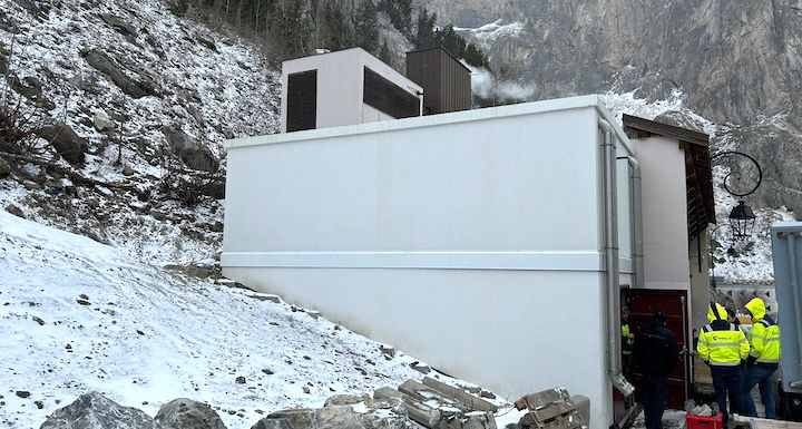 Mise en place de la chaufferie préfabriquée à Val d’Isère, photo Charwood