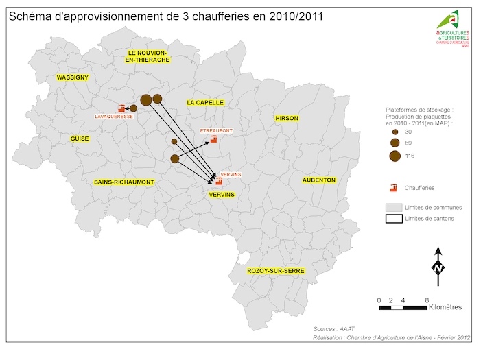 Depuis 2006, l’AAAT propose également des contrats d’approvisionnements à ses clients, et s’appuie sur un réseau de 22 plateformes agricoles de proximité. 40 agriculteurs sont aujourd’hui impliqués dans la production de plaquettes bocagères, et de nombreux autres souhaitent s’engager. Ainsi, l’offre de plaquettes bocagères est prête à s’accroître dès lors que la demande augmentera.