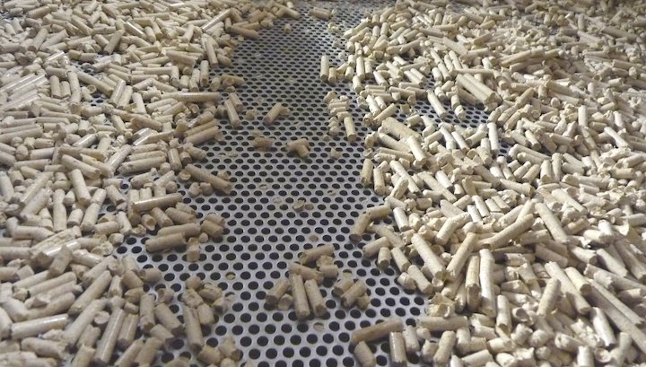 Granulés sur le tamis après refroidissement, photo Frédéric Douard