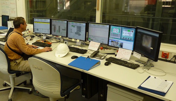 La salle de contrôle avec vue sur la centrale, photo Frédéric Douard